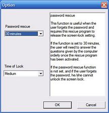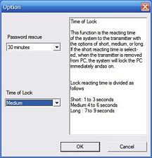 After that there are only two options available from the menu, and that is the Password Rescue feature and the Time of Lock settings. The Time of Lock setting is to change how long it takes for the computer to lock after the transmitter is taken from range, the Password Rescue is just that, if you forget your password you’ll need to answer questions to reset it like most other applications allow.