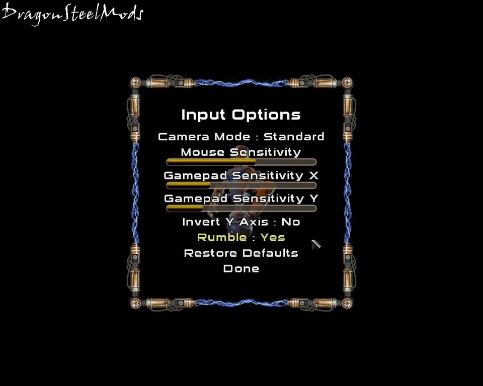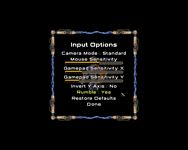 The next section of the Main Menu would be the Input Options, this is where you can change the camera mode, mouse sensitivity and other gameplay settings.