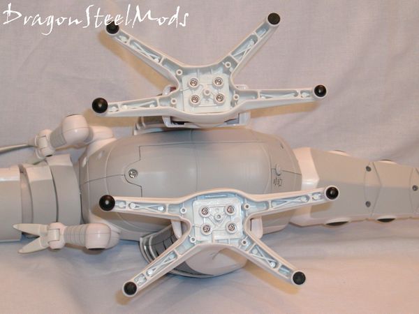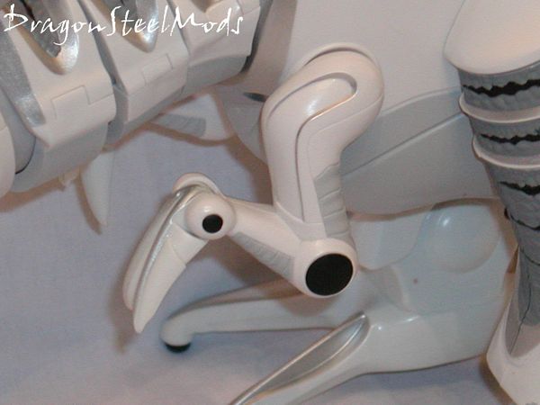 The feet are interesting, they are large and help the Roboraptor keep his balance. His stomach is where the batteries would go, good a place as any I guess…