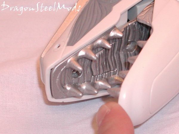 In his mouth, between the sharp teeth, on the roof is yet another sensor, this one can be used for playing tug of war, or having him bite you or someone else!