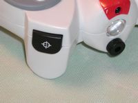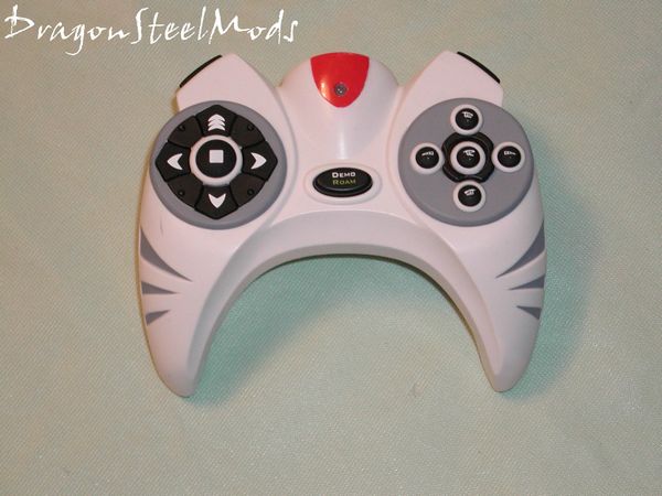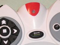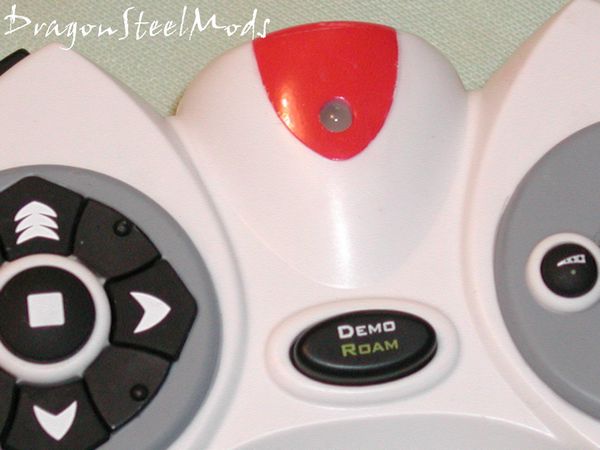 In the center of the remote is the ‘Demo’ and ‘Roam’ button, hit it once and the Demo starts, hold shit and hit it your Roboraptor will roam about you house looking for things to get into. Above that is a little LED that lights up when you press a button.