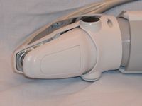 There are also infrared sensors located on each side of his nose as well, they look like his nostrils. There are also microphones on both sides of his head to detect sound in stereo, both of these sensors seem fairly sensitive.