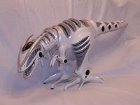Dinosaurs are back and roaming the earth in the 32 long Roboraptor, an advanced fusion of technology and personality. With his advanced artificial intelligence personality, realistic biomorphic motions, direct control and autonomous (free-roam) modes, the Age of Dinosaurs has truly returned. Roboraptor comes to life with the following features: