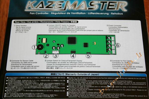 The back of the package features a diagram/schematic of the back side of the KazeMaster. The sides list the specifications on one side and show another picture of the KazeMaster on the other.
