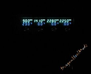 Kaze Master is able to control and monitor up to 4 fans and 4 temperature monitor independently. These figures are displayed on VFD display.
