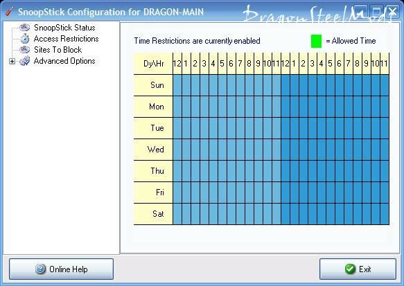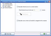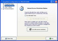 The next choice or section would be ‘Access Restrictions’, here you can limit the time your child or employee is allowed to access the internet, you can configure certain time periods, and there are advanced options where the SnoopStick has to be plugged in to allow access, or limiting access to a certain number of minutes.