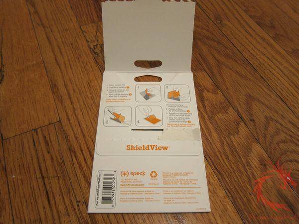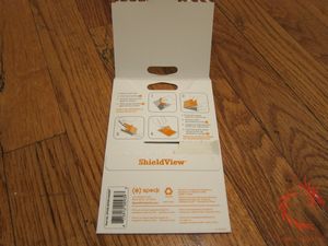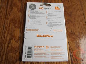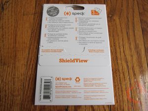 The Speck ShieldView for iPod Touch/iPhone comes in a stiff cardboard envelope. Underneath the back flap are the application instructions. Inside the package are three individual screen films.