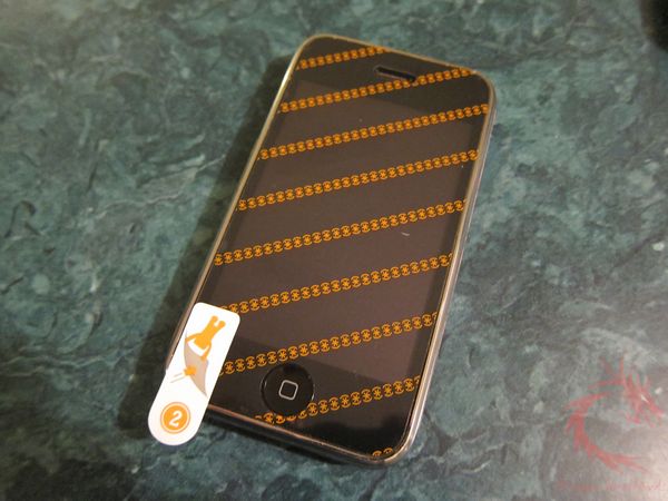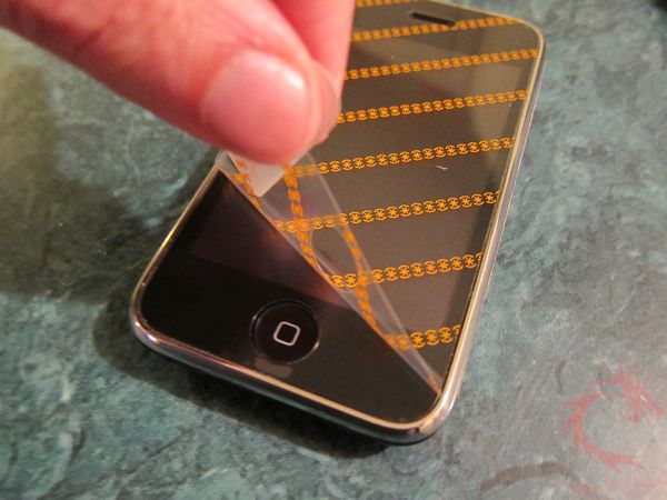 The iPhone film is a little trickier to apply as there are two openings to line up as opposed to the single one on the iPod Touch. Once satisfied with the positioning of the ShieldView, remove the backing with the “2” label. If there are any bubbles noticed then squeegee them out using a flat surface such as a credit card.
