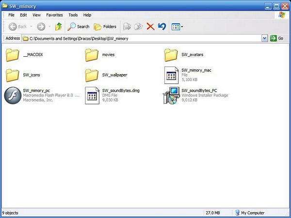 Included in the folder are Star Wars and mimobot related avatars, icons and wallpapers. The wallpapers are very cool, they features the Star Wars mimobots ‘photoshopped’ into actual Star Wars movie scenes, and not just R2-D2, all of the Star Wars mimobots are included. Mimoco included different resolutions as well so there is one to fit everyones screen size.