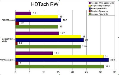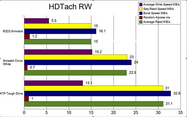 Well that’s enough of that, let’s see what this thing can do compared to a couple other flash drives I have on hand. I’m comparing the R2-D2 mimobot to my ATP Tough Drive and Swissbit Cirrus White flash drives.