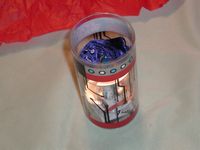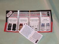 Looking at the bottom of the container we can see some more little papers in there, which when unpacked I found to be another little advertisement for the Star Wars mimobots and a brief instruction and car sheet for the mimobot.