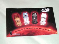 Two of your favorite galaxies have collided to create four awesome Star Wars mimobot crossover characters. Each are available in 1, 2, & 4GB capacities and will come preloaded with bonus removable Star Wars mimobot content like trailers, soundbites, avatars, and wallpapers!