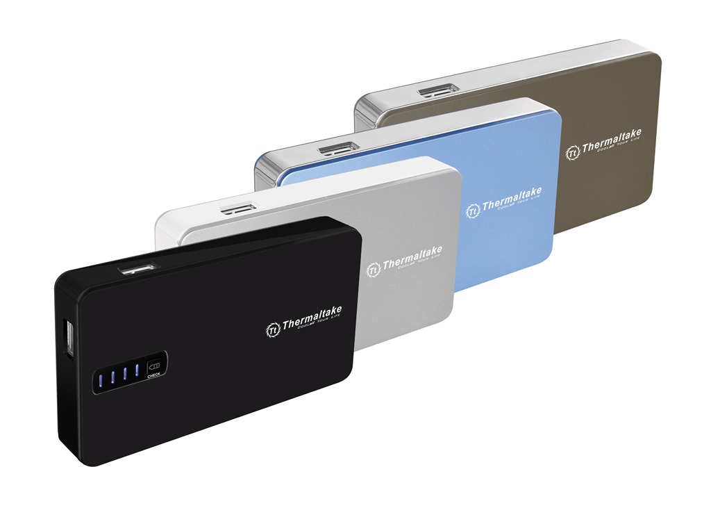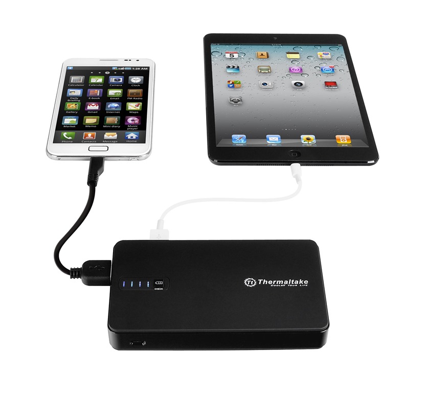 Need more power for your devices on the go? Well I know I always seem to need more, at least my kids always seem to with their portable gaming gadgets and MP3 players. Personally I try and keep my stuff charged and make sure it’s charged before I go anywhere, my kids don’t and for whatever reason they get mad at me if their stuff isn’t charged. Don’t make no sense, but a lot of what my kids say and do doesn’t. Anyway, Thermaltake has just launched a large 8500mAh portable battery pack that has two USB ports on it. You can charge two devices at the same time including tablets!
