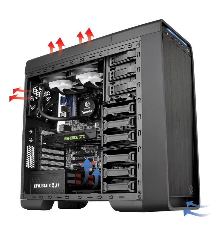 The perforated front-top panel has implemented two of latest data transfer devices with SuperSpeed USB 3.0 ports along with two USB 2.0 ports, a HD microphone and headset jack, to grant direct access when needed. A top-mounted 2.5” or 3.5”HDD Docking Station enables blazing fast file transfers and effortless hot-swap drive replacement for easy setup or removal of storage or backup media.