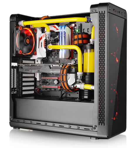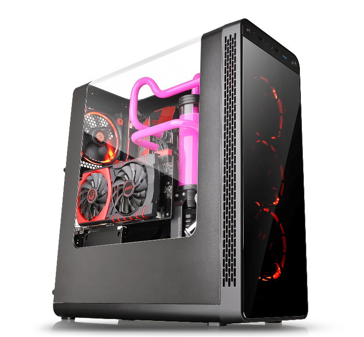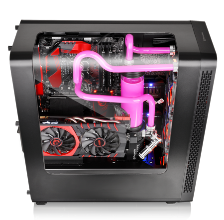 Thermaltake is proud to announce the latest line of cases – the View 27 Gull-Wing Window ATX Mid-Tower Chassis with patented appearance design and exclusively Tt LCS Certified. Specially crafted with a curved window, users can fully display their system whilst keeping the interior dust free. Additionally, the View 27 offers a superior hardware support with complete thermal solution. The tool-free drive bay design allows users to freely interchange the hard-drive cages to suit their particular needs. Moreover, with the dual VGA placement layout, users can choose to place the graphic card either vertically or horizontally. Most importantly, the View 27 is perfectly designed for liquid-cooling system. It is compatible with DIY liquid cooling radiator and AIO liquid cooler. The new Thermaltake View 27 Gull-Wing Window ATX Mid-Tower Chassis is the best choice for both entry-level users and experienced PC enthusiasts!