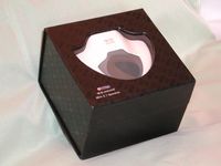 The box is actually two parts, there is a slip cover with all the information on it, and then a black gift box inside of that.