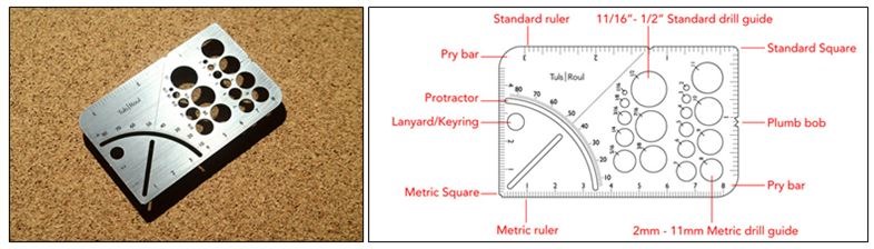 Roul – Measure twice, cut once! Roul is world-ready with both metric and standard scales, a square that can also find any angle with the on-board protractor, a perfect plum bob, a dual standard gauge for sizing up dowels, rod stock, wire, drill bits or bolts. Roul is optimized for the workshop, wood working, carpentry, and crafts.