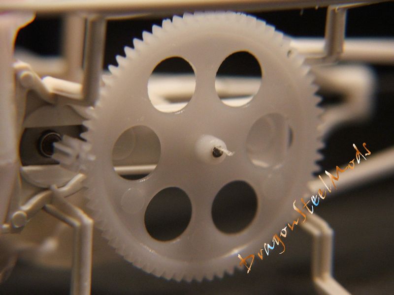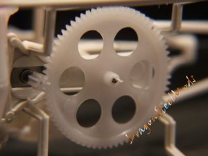 On the bottom of the Micro Hughes you’ll notice a large gear that is connected to a smaller gear that is in turn connected to the motor. It’s an odd system but it works well, I would have expected the motor to be connected directly to the main rotor..