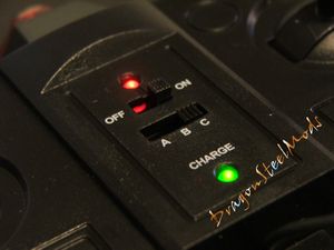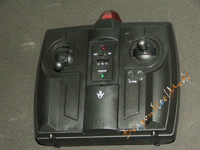 The Remote for the Micro Huges 300 is large and easy to hold in both hands. The bottom is where the battery compartment is where the six ‘AA’ batteries go, the bottom is also textured for a good grip. On the top of the remote is a red plastic casing that houses the Infrared LEDs.