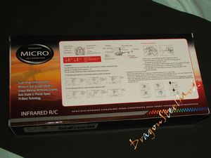 The Micro Hughes 300 RC Helicopter comes in a brightly colored and informative box, in fact the instructions are on the back of the box! You can see the helicopter and the remote through the front window and the box even includes a convenient carry handle as well.