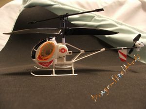 The ultra micro Hughes 300 RC helicopter is the world’s newest, smallest and lightest RC Helicopter you can get! At only 5" long it easily fits in the palm of your hand, is fully functional and has the same classic design as the Hughes 300 helicopter that has become so famous in the RC world. This tiny marvel has 2 transparent windows so you can see in the cockpit, landing gear and a tailshaft stabilizing fin for better control.