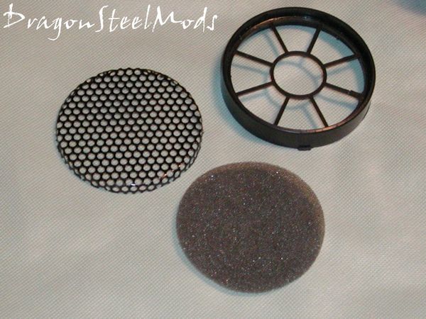 The filter is your basic metal screen with a sponge type filter behind it, removing it we can get a look at the fan.