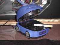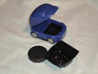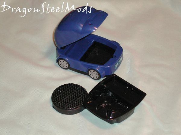 To turn the car on, or to activate the fan you just need to open the top, doing that we can also get a look at the filter and the ashtray itself.