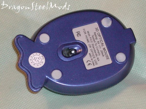 Looking at a view from the front of the mouse we can see the mini USB port located at the bottom, I’m guessing it’s supposed to be the mouth of the fish. The button are nice and big, something you don’t see too much on a portable mouse, and there is also the small scroll wheel between the buttons.