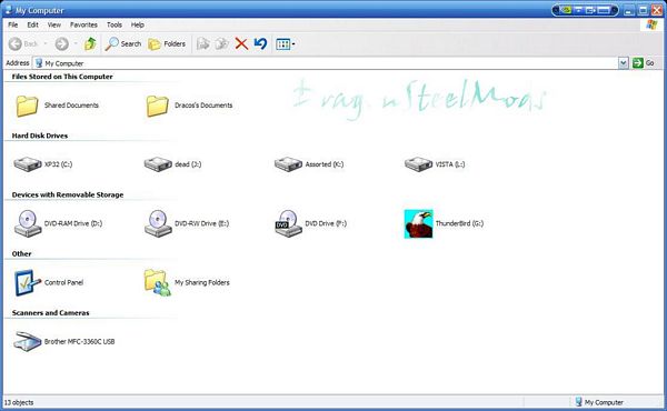 If we look at ‘My Computer’ we’ll see the Direct link cables actually appears as a Removable Storage drive called Thunderbird.