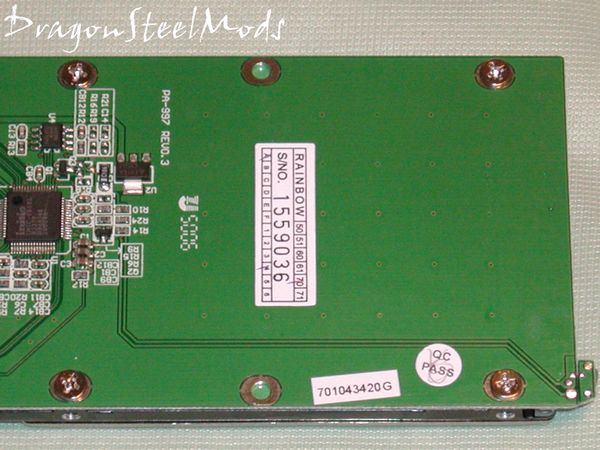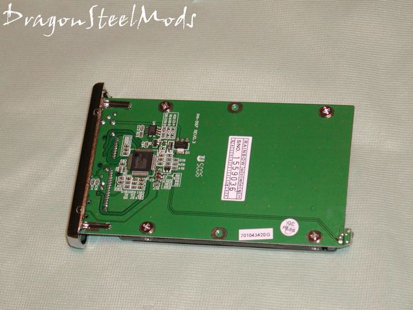 On the back of the board is where we find the actual chipset that controls everything. Also you’ll notice that there are several holes as well to be used to mount the hard drive.