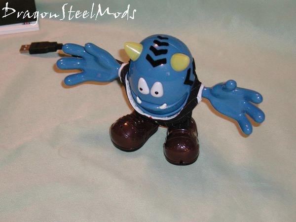 Looking at the bottom of his feet we an also see the volume control knob on the side of the left foot. The USB cord is about 3 feet long, so it should be long enough for optimal placement anywhere or or around your desktop.