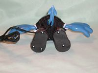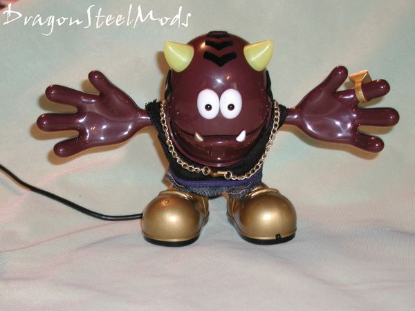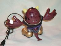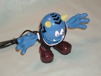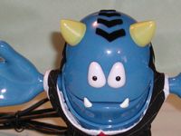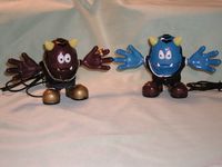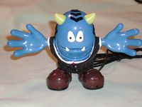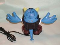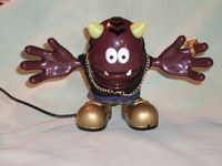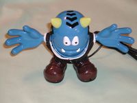 Verballs are pretty much all plastic, Slick has a business suit on and furry lines of hair on the top and sides of his head. His right foot has a tiny hole on the top of it, this the microphone, while the left foot has a tiny on/off button on it and volume control knob on side. The mouth also moves when a person talks through the Verball or he’ll lip sync to music.