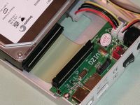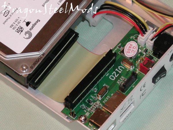 Since all of my SATA drives are in use in my main computer, I'm using one of my IDE drives, it's a Seagate 7200.7 model, 120gigs in capacity. Vizo included a short IDE ribbon cable and a short Molex power cable to connect your hard drive to the Luxon interface. It's very easy to do, just like you would connect any hard drive in your computer.