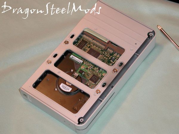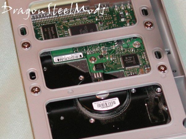 The hard drive is then secured to the caddy with four screws on the bottom side.