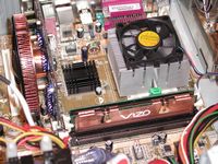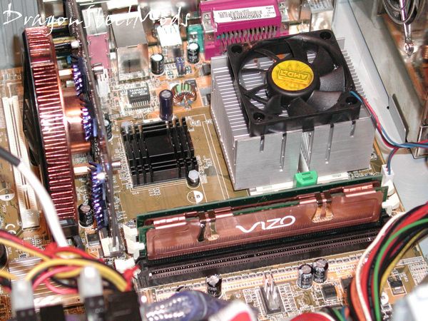 Well it just so happened that I was building a computer and had a stick of ram without a cooler on it, very nice timing for this to arrive. It’s an older setup, just for email, internet, work etc, but the ram can always benefit from being cooler. So I decided to stick the Vizo Sleet DDR Cooler on one of the 256Mb sticks of ram.