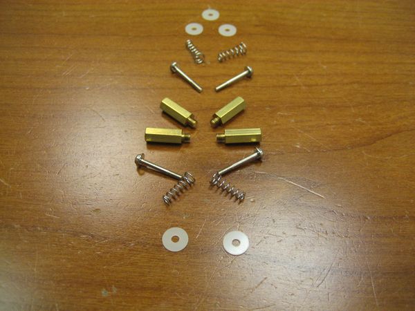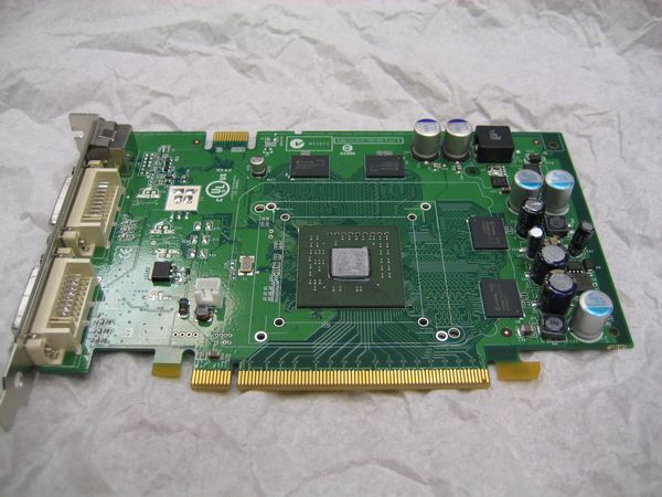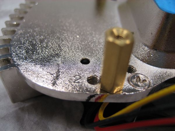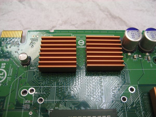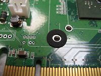 Consulting the table on the instruction sheet, the number 3 holes were the match for the NVIDIA 7600GT series of video card. After inserting the four stand-off screws, the rubber adhesive discs were placed over the corresponding holes on the upper surface of the 7600GT card.