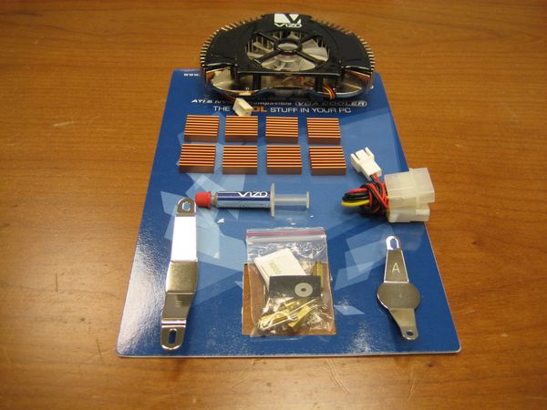 Today I will be looking at the Vizo Sleet VGA cooler. Vizo is the maker of the well regarded Sleet line of copper chipset coolers for video cards. Realizing that cooling the video RAM was not enough, Vizo has released an all-in-one cooling solution for most graphics cards. This kit fits almost all models of video cards from ATI and NVIDIA up until the 7600 lines for NVIDIA and the x1300/x1600 series for ATI. Whether you want to cool down your VGA, tone down the noise level or add some led bling, Vizo now gives you the option in one complete kit. Lets get started…