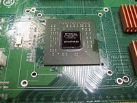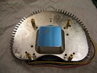 Once the fan was removed, the VGA chip was found under a thick mound of silver thermal interface material.