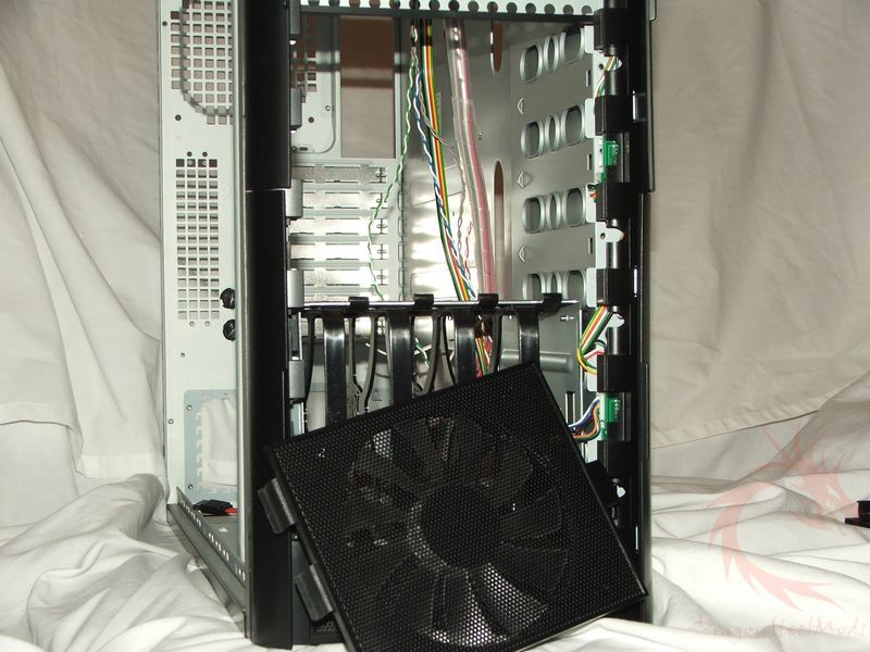 The front two 120mm fans are mounted on their own covers and can be