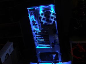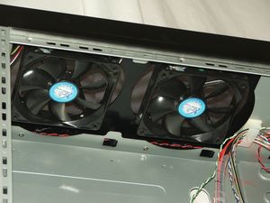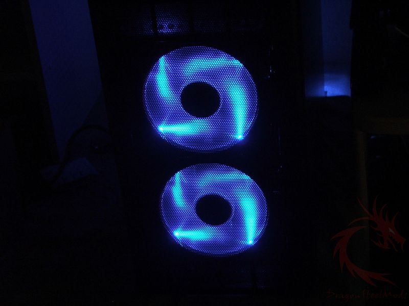 attaching twin 12cm blue LED fans on the top panel to efficiently
