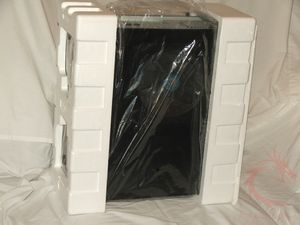 with lots of styrofoam and plastic for protection.